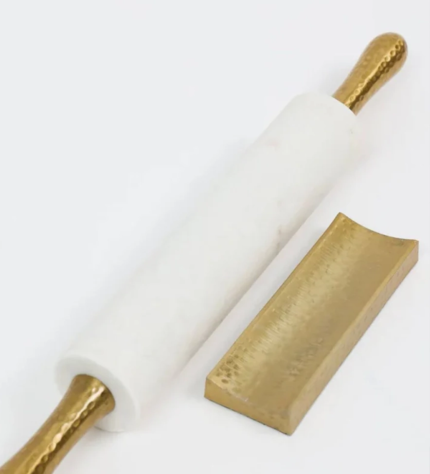 Marble rolling pin with hammered handles